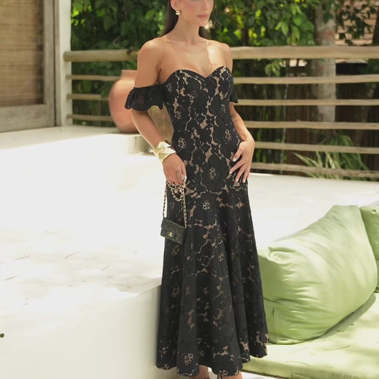 Vestido Midi De Renda Preta Lace Glow
