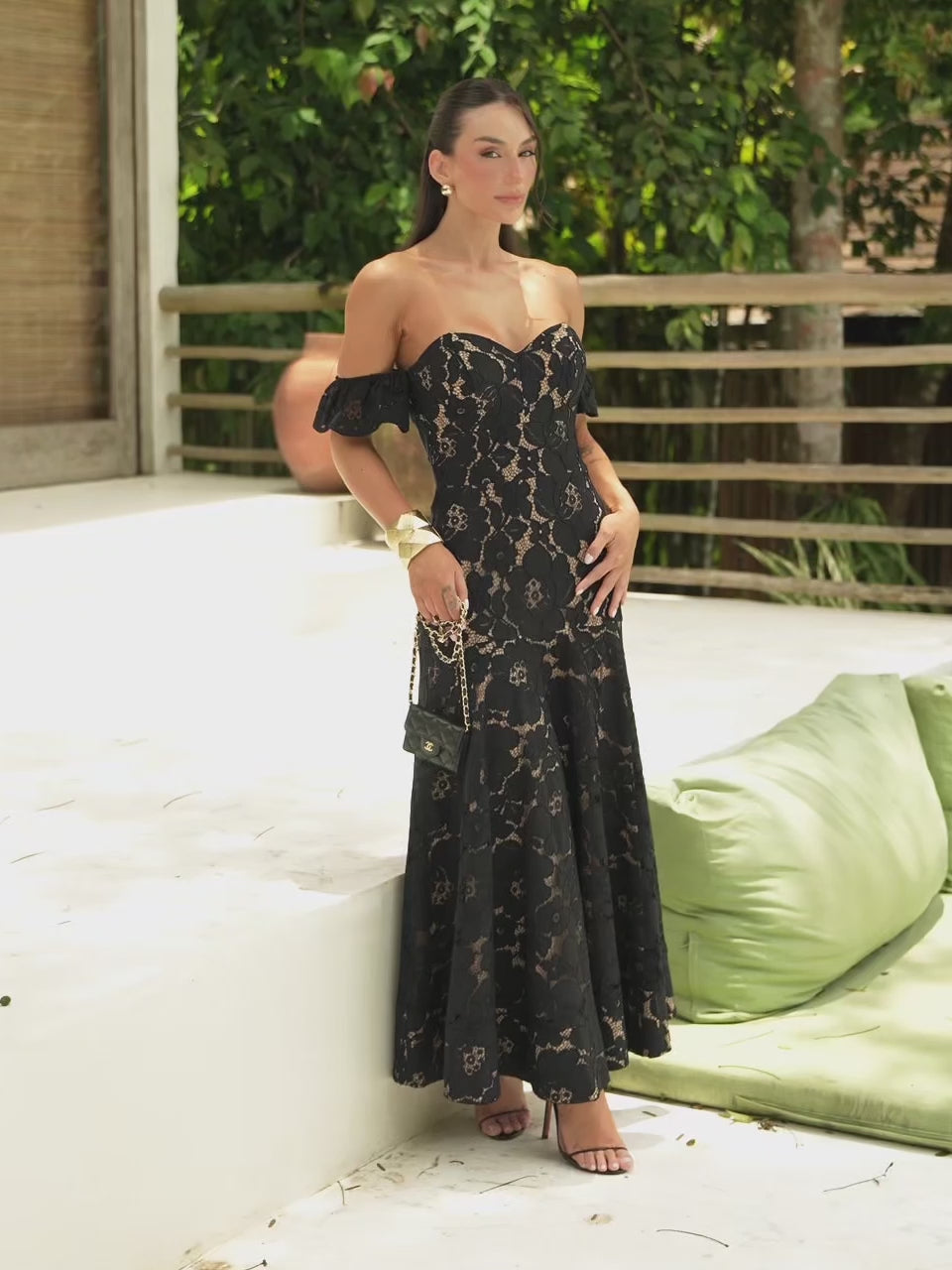 Sugestão de styling: aposte em acessórios dourados, sandálias pretas clássicas e uma mini bag elegante para finalizar um look digno de noite especial.