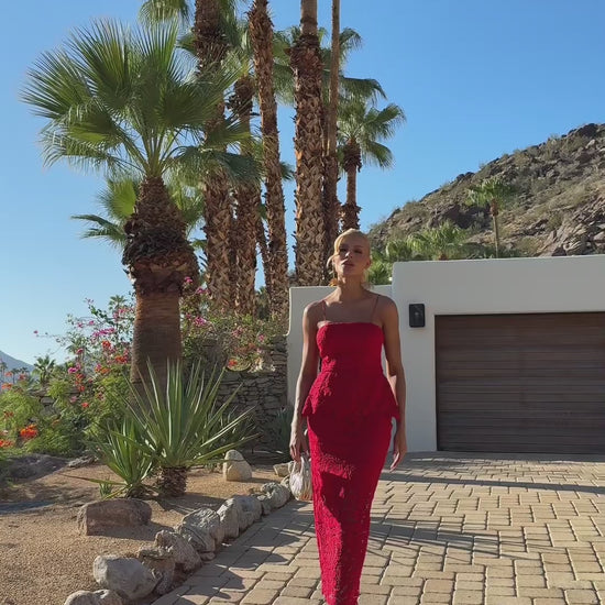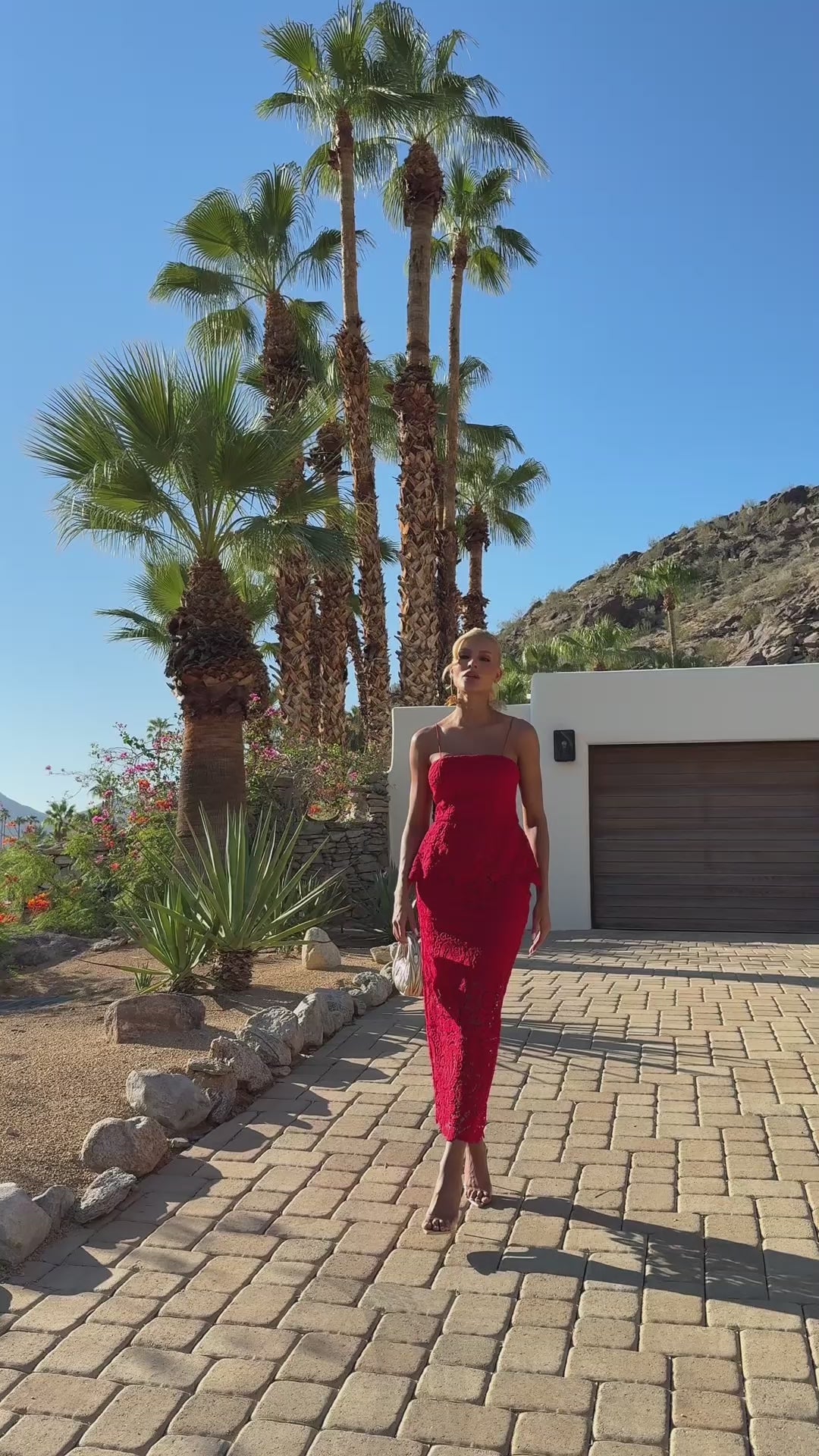 O Conjunto Midi Vermelho Paixão Lace é confeccionado em renda guipir, unindo sofisticação e feminilidade em cada detalhe. O cropped estruturado com alças finas valoriza o colo e a cintura, enquanto a saia midi ajustada com barrado em renda vazada garante impacto e movimento refinado. O zíper de metal nas costas finaliza com acabamento impecável.
