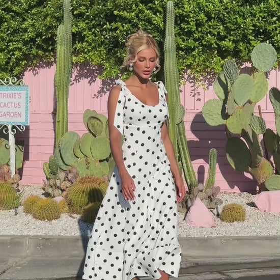 Vestido Midi Off White Retrô Dots