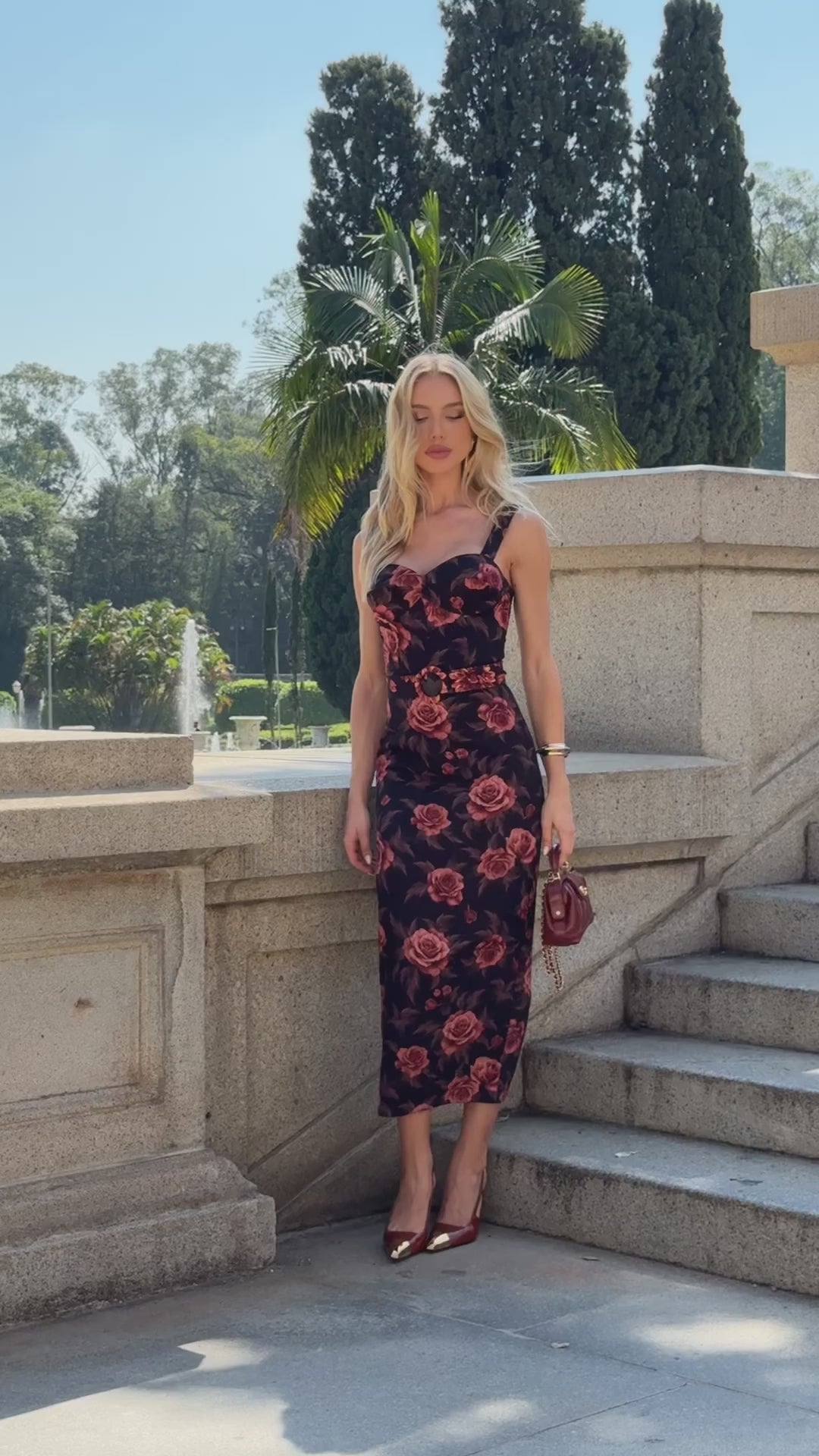 Para o Fall/Winter 2025, as estampas florais se transformam com um toque mais dramático: fundos escuros e padrões mais densos trazem um contraste marcante e elegante.
